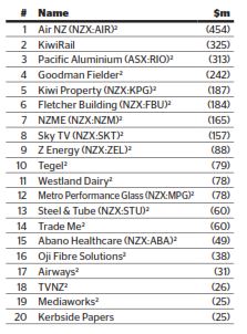 The rest of the new entries were Simsmetal Industries (181st), Scott Technology (182nd), Kordia (183rd), McConnell Dowell (187th), Baxter Healthcare (190th), Mitre 10 (193rd), Progress Capital (194th), Sistema (196th), and Airwork (200th).